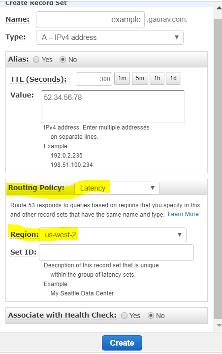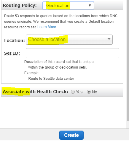 When you create a record, you choose a routing policy, which determines how Amazon Route 53 responds to queries.