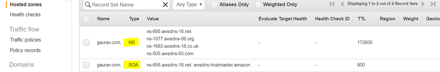 Route53 name server that creates the SOA record: ns-2048.awsdns-64.net. Email address of administrator: hostmaster.example.com