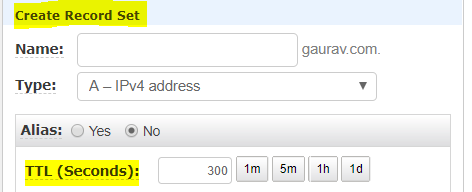 You must define TTL when you create a record set.