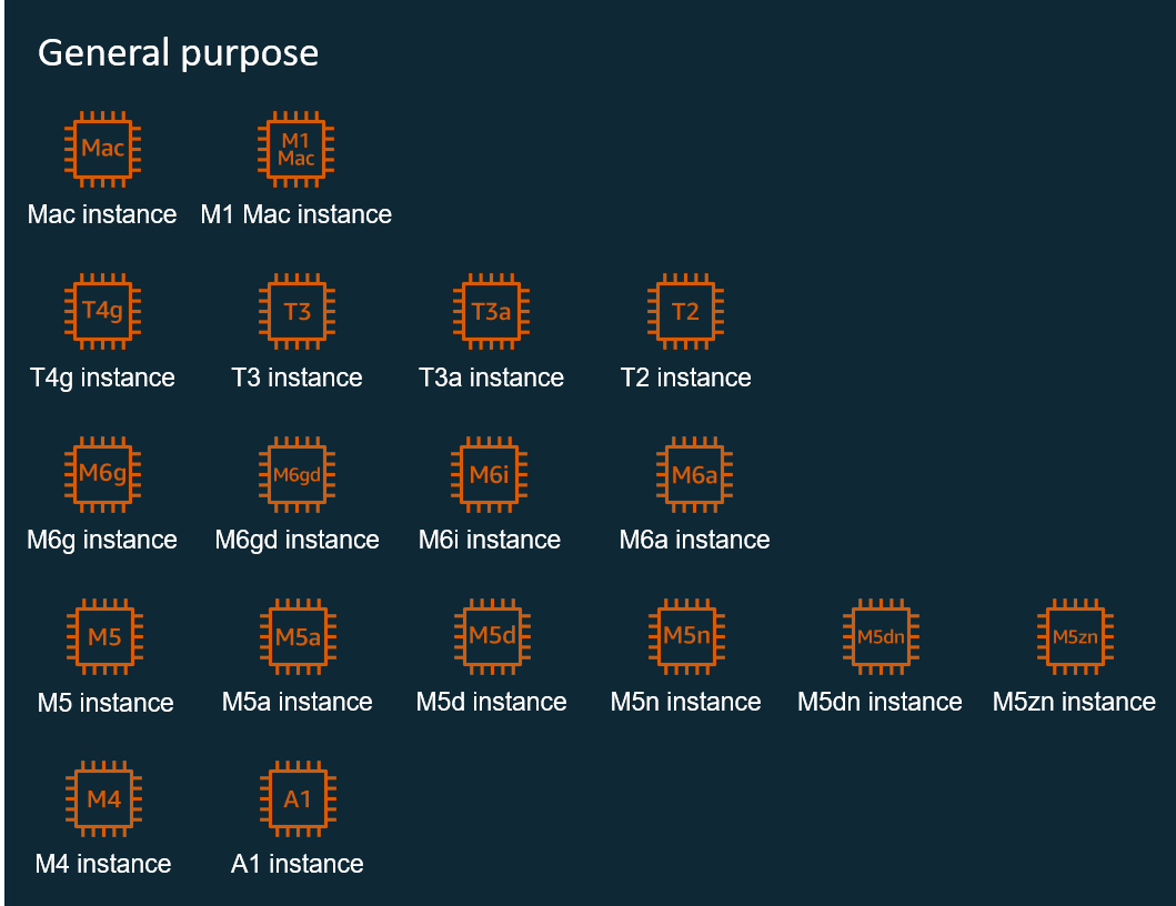 The AWS instances are currently categorized into five distinct families. To learn more, expand each of the following categories.