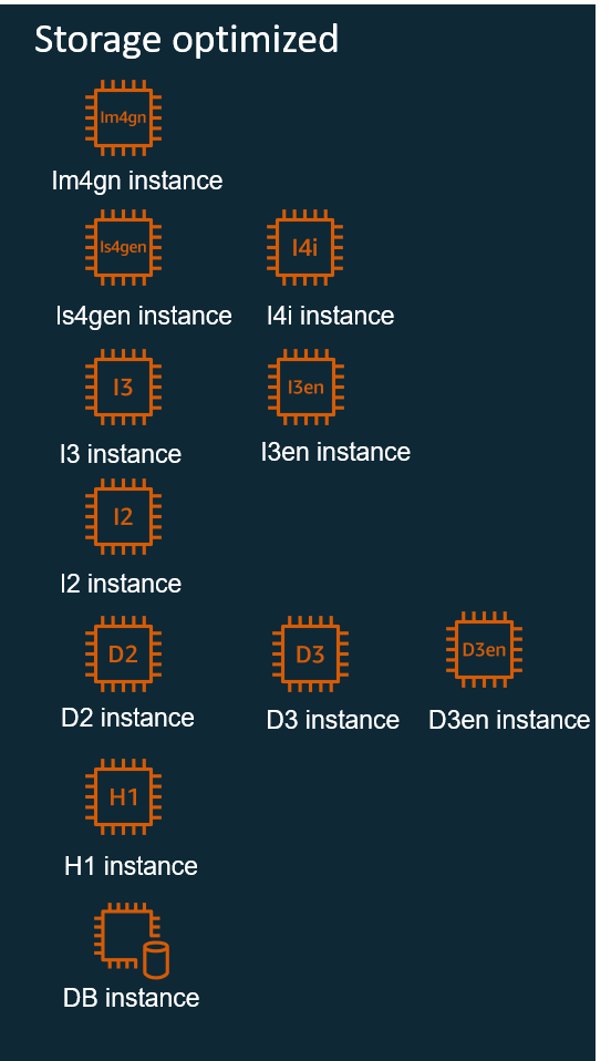 Instance families have sub-families, which are grouped according to the combination of processor and storage used.