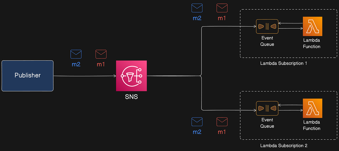 In this system, publishers can send messages to a “topic,” which acts as a logical access point and communication channel. Subscribers, who wish to receive these messages, can subscribe to the SNS topic using various supported endpoint types. These endpoints include Amazon Data Firehose, Amazon SQS, AWS Lambda, HTTP, email, mobile push notifications, and SMS. Through this asynchronous communication model, publishers and subscribers can effectively exchange information.