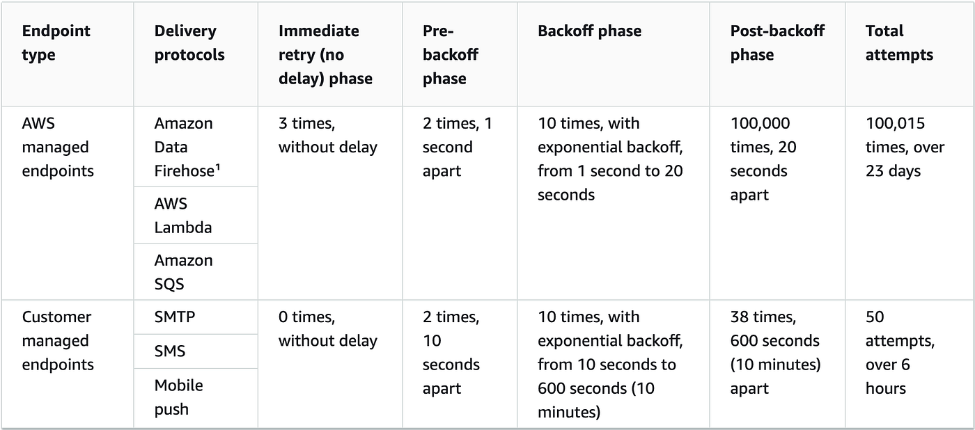SNS message delivery retries
